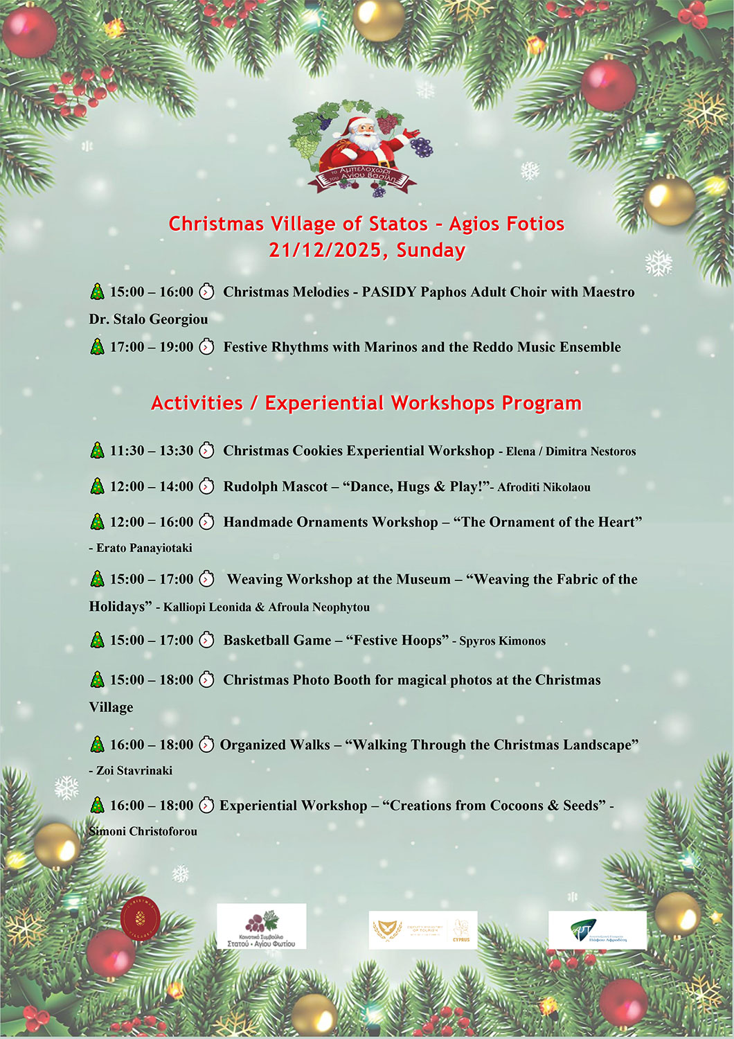 Christmas Village of Statos – Agios Fotios – Events Program 19-21/12/2025